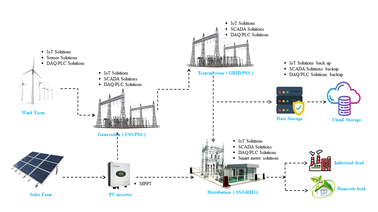 Our focus is on providing a comprehensive approach to management, involving monitoring, data acquisition, and presentation through a dashboard. The process begins with continuous monitoring, which implies the real-time tracking and surveillance of various parameters and performance metrics associated with the turbine. This monitoring likely involves the use of sensors and data collection devices strategically placed on the turbine to gather essential information about its operational status.